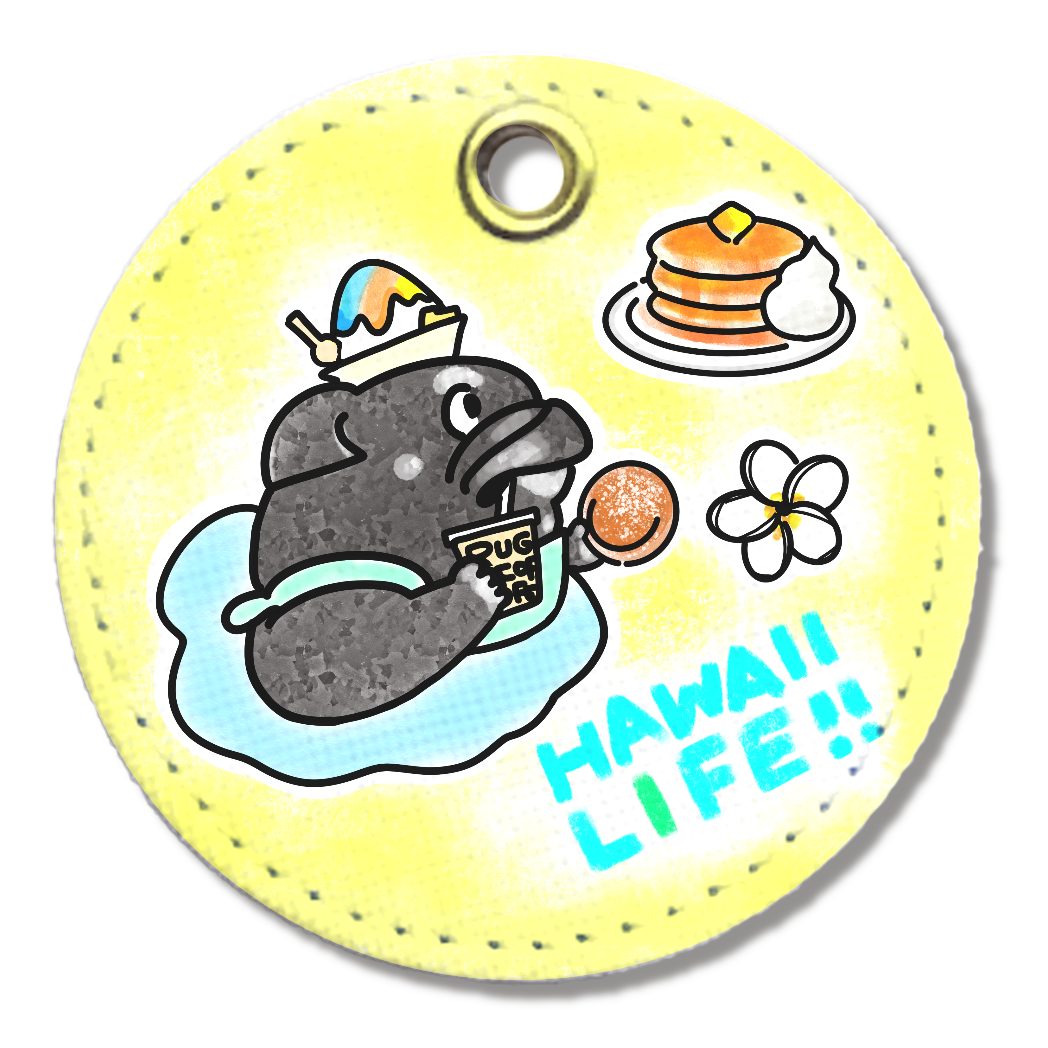 【NEW】レザーキーホルダー「パグのハワイライフ!」